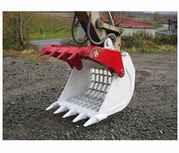 ・この機械は従来のスケルトンバケットと比べ2倍以上のふるい作業処理能力と、含水比の高い土砂等のふるいにも使用できるよう設計しました。